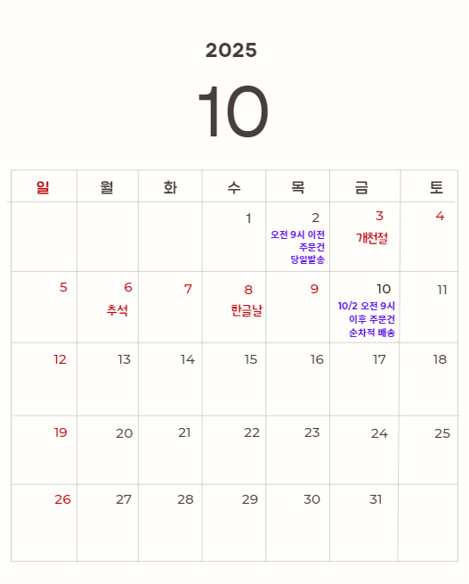 10/3(금)~10/9(목) 추석 연휴 기간 동안