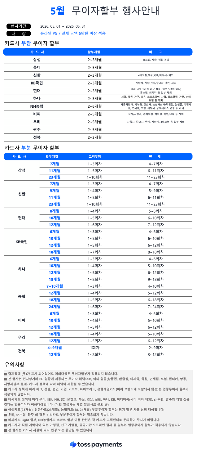 [공지사항] 5월 무이자할부 행사안내